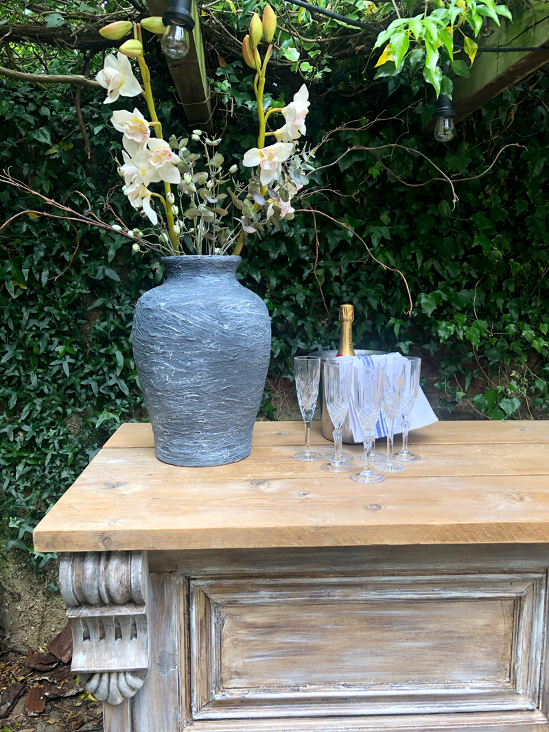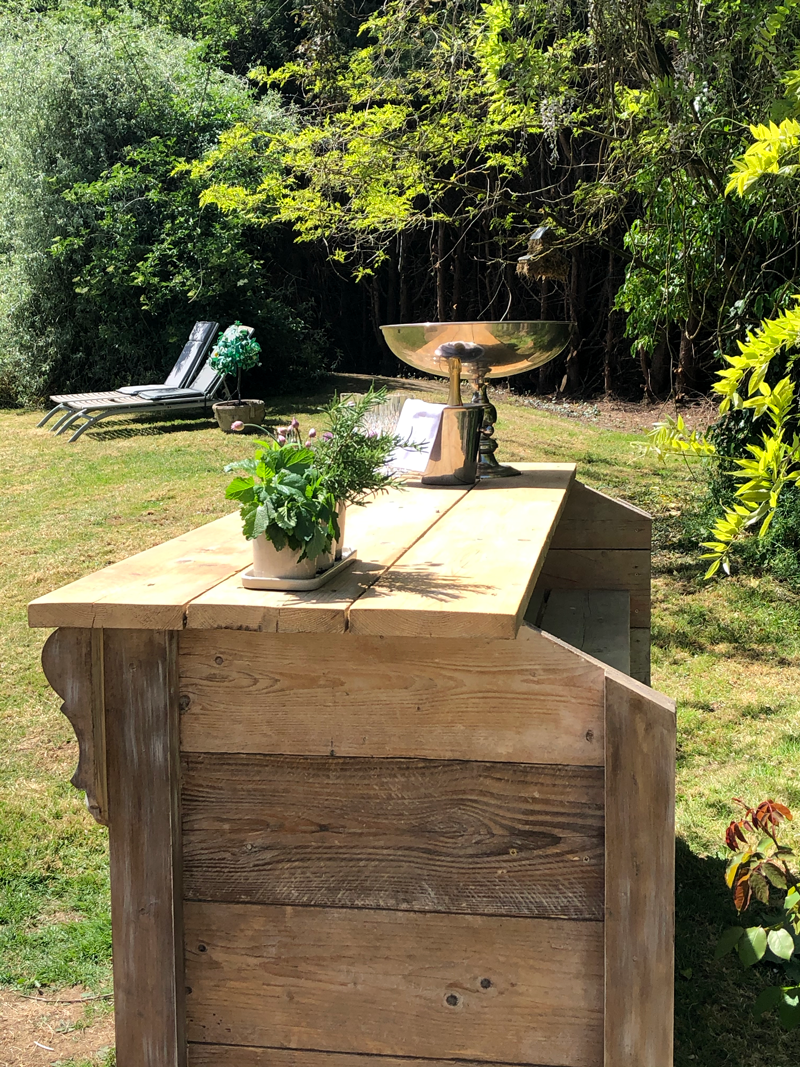 I'm so pleased with our garden bar. It's so practical because we can wheel around the garden as the sun changes position. So we always enjoy a G & T in the sun.